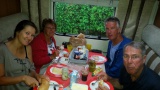 Het begon leuk met een gezamenlijk ontbijt. Rond 11 uur afgerekend en afscheid genomen van de fietsers daarna vertrokken diana en dinand en als laatste ik. Ik hoefde maar 50 km maar de laatsten waren in de stad Florence. Brede wegen drukke scooters en snelle autos om me heen. U heeft u bestemming bereikt zei mijn navi maar er was niks te zien. Geen enkele camper. Ik wilde net mijn hulplijn gaan bellen toen een sjieke heer kwam aanlopen op de stoep. Ik dacht die vraag ik eens en hij deed alle moeite me de weg te wijzen. En ja hoor niet veel later reed ik door een slagboom trok een kaartje en legde dat naast me op de stoel. bijzonder smalle ingang van een gewoon parkeerterrein maar het ging en toen ik net een plekje gevonden had zag ik naast me dat Mona het hele biljet kapot geknabbeld had. Toen heb ik haar meegenomen en aan de parkeerwachter laten zien hij kon er wel om lachen en ik kreeg een nieuwe. gelukkig gearriveerd. Nog geen minuut later belden ze dat ze n betere plek gevonden hadden. Maar ik zei NEE hier ga ik niet meer weg kom me maar halen en zo gebeurde het. We zijn nog naar de lidl geweest, voorraad aangevuld. Toen naar de camping boven op de berg. Heel mooi maar een verschrikkelijke toegangsweg. Hoe kunnen ze dat verzinnen. We kregen een mooi plekje met uitzicht. Tegen de avond toen het donker begon te worden zag het sprookjesachtig uit met al die lichtjes van de stad. Heel mooi.
