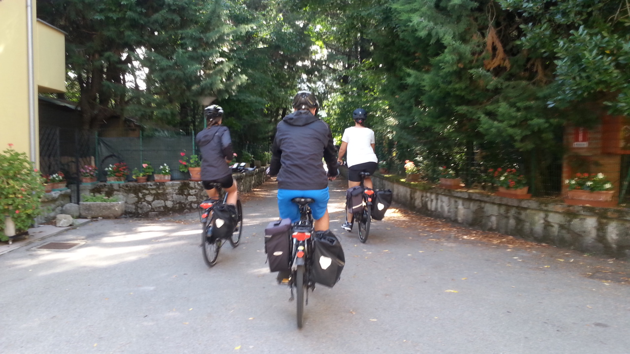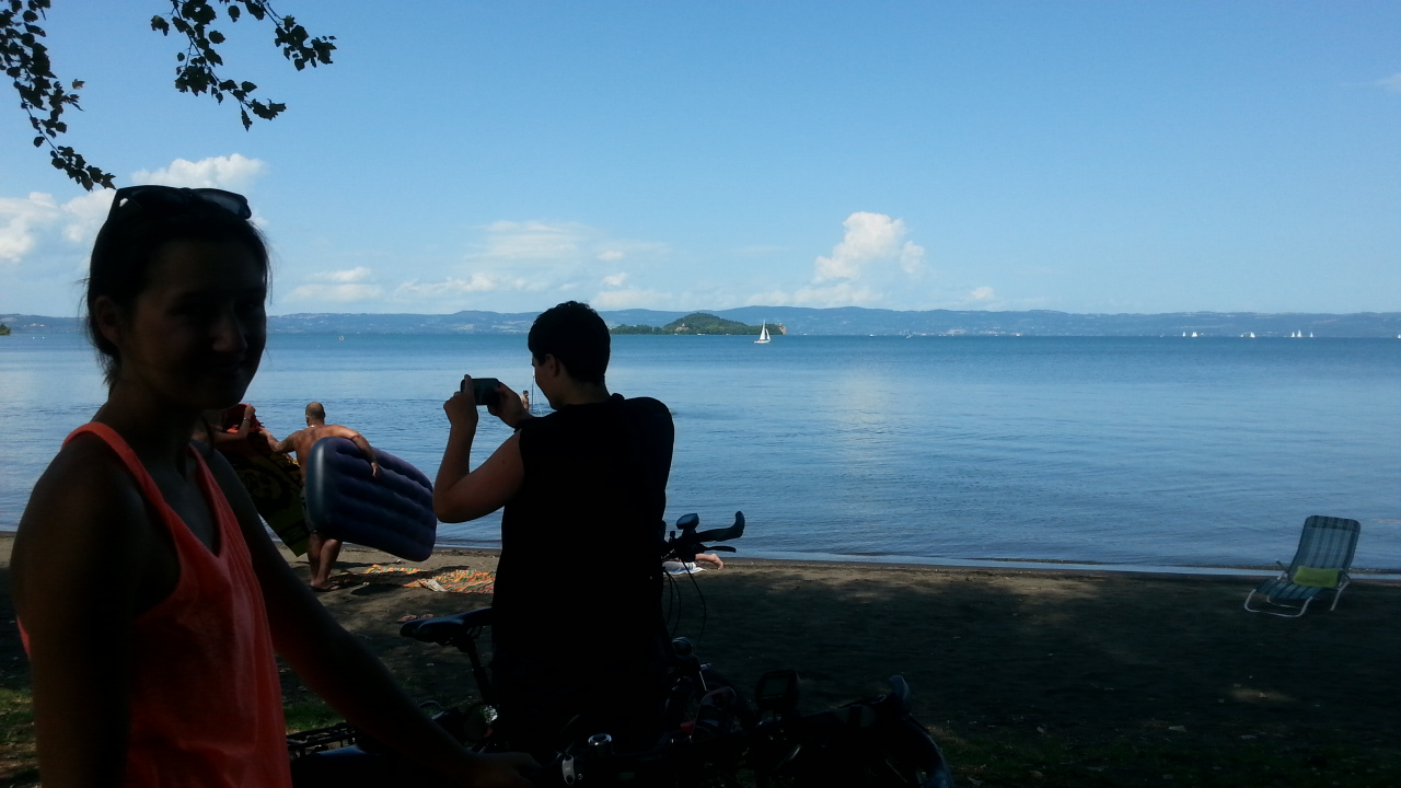 De eerste krassen zitten erop! Te dicht langs de takken van de boom. Maar voor een leek bijna niet te zien. Sow wath. Het dorpje vanwaar ik vertrok heette Amiata en toen ik vertrok ging ik eigenlijk de verkeerde kant op. Daarom ging ik via een hele moeilijke pas met heel slecht wegdek naar 1700 meter. En het werd steeds moeilijker als dit mijn tweede dag zou zijn geweest was ik ermee gestopt. Ik had echt zin om de sleutel over te dragen toen ik op de camping aankwam. Maar ze hebben me zover gekregen om toch door te zetten. Op de camping was het heel mooi want het lag aan een bijzonder blauw meer. Macaroni restjes gegeten en vroeg baar bed. Dat was het.