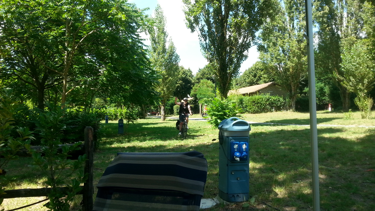 Het begon met een heerlijke douche en toen ik terug kwam bij de camper stond eef klaar om te gaan zwemmen in het meer. Het zag er zo aanlokkelijk uit dat ik meteen mee ging en zo hebben we heerlijk gezwommen om half 8 smorgens. De tocht verliep heel goed prachtige route naar lago di vico en om kwart na elf was ik al ter plekke op een prachtige camping waar het heel rustig is. Voor het eerst de camper zelf op blokken geparkeerd omdat het terrein niet egaal is. Toen ananas en meloen gesneden om het fietsteam van vitamientjes te voorzien en het eten gemaakt. Daarna met nootjes en rode wijn vakantie gevierd. Na een paar uur kwamen ze vol verhalen aan en ik kreeg van lindy een zelf geplukte hazelnoot. Maikel ging met een jongetje voetballen en Eva ging lekker lezen. Ik merk dat men het jammer vindt dat we bijna in Rome zijn. Ik niet ik vind het fijn dat het tot nu toe zo goed gegaan is. Morgen nog en dan heb ik mijn taak volbracht. YES