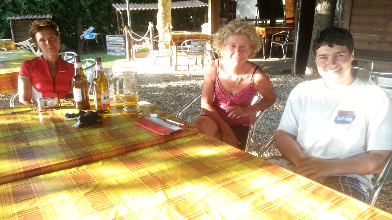 Terwijl ik mijn verhaal gisteren zat te schrijven, zagen we de twee dames binnenkomen. Ze konden ons applaus echt waarderen. Ook voor de dames kwam aan een mooie fietsreis bijna een eind. We gaven onze sitenaam door en er werd nog een foto gemaakt.misschien tot in Rome. Ik had maikels fietskleren nog gewassen maar die waren nog niet helemaal droog dus heb ik nog een half uur geföhnd. En toen na een onrustige nacht mijn laatste reisdag begon zag ik er wel tegenop. De drukte van Rome. Voor we vertrokken nog even onze site bijgewerkt en toen las ik zoveel opbeurende woorden van Rob dat ik dacht jazeker gaat me dat lukken. Net op het juiste moment. En zo reed ik vol goede moed mijn laatste 50 kilometers. Van een rustige weg ging het over naar druk, van druk ging het naar drukker en ineens 7/8 banen tegelijk. Toet toet volle concentratie bijna verkeerde invoegstrook maar met een beetje hulp van boven ging het zonder problemen.