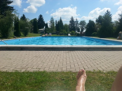 Dit is onze eerste rustdag. Mooi zonnig zomer weer. We zitten wat lui voor de camper en hebben het idee dat we al weken onderweg zijn, vooral de fietsers. Met lindy in het zwembad een half uur mijn banen gezwommen, mijn boek uitgelezen, in de speeltuin gespeeld en dit verslag getypt zodat Maikel dit op de site kan plaatsen. Heerlijke vakantie.
